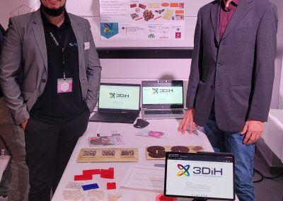 Unser Team vom 3DiH, bestehend aus Patrick Amato, Gerhard Schenk, Jean Warnecke, Martin Jaeger, Kilyan Talhouet, Max Fröhlich und Gustavo Melo, präsentierte im Rahmen des Hackathons innovative Anwendungsfälle aus dem 3DiH-Projekt. Die Demonstrationen konzentrierten sich auf den Einsatz von 3D-Drucktechnologien in den Bereichen Lebensmittel und Polymer, wobei die Vorteile und Möglichkeiten dieser fortschrittlichen Technologie für das Handwerk beleuchtet wurden.